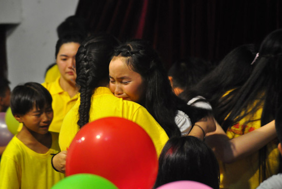 支教志愿者和学生抱在一起话离别。